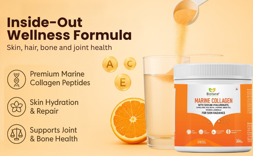 Biotane Marine Collagen with Sodium Hyaluronate, Biotin, Alpha-Lipoic Acid, Lycopene, Green Tea, Vitamins & Minerals is more than just a collagen supplement – it’s an advanced, holistic beauty & wellness solution. Most collagen products only deliver skin elasticity and hydration benefits, but Biotane goes beyond. Our 7-in-1 formula combines marine collagen peptides with powerful antioxidants, hydration boosters, and essential micronutrients, offering unmatched benefits for skin, hair, nails, joints, bones, and overall vitality.
